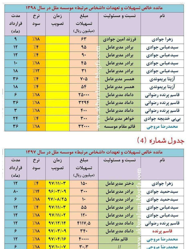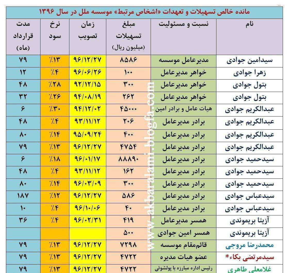۲۲ تریبون تومان دزدی کرده،ببینید فقط چه وامهایی از مال مردم بدبخت به خویش و قومش داده.....