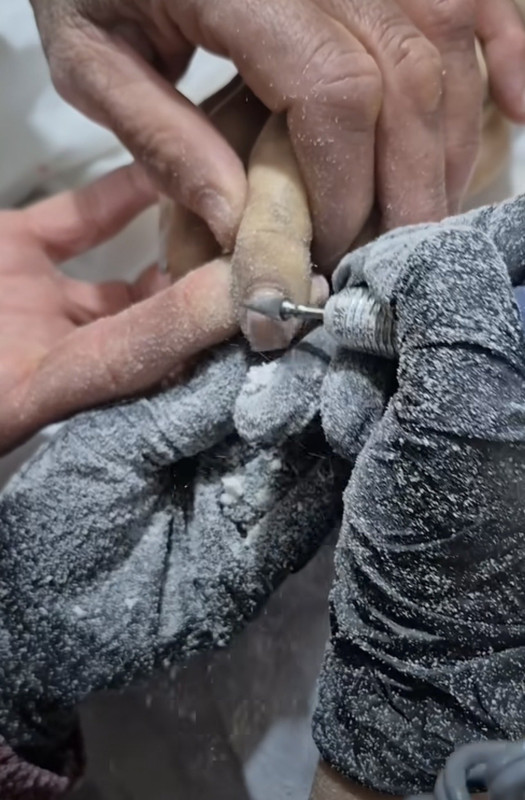 وقتی پدر انگشتان دخترش را در دست میگیرد تا برای غسل لاک و ناخن مصنوعی اش را بردارند.